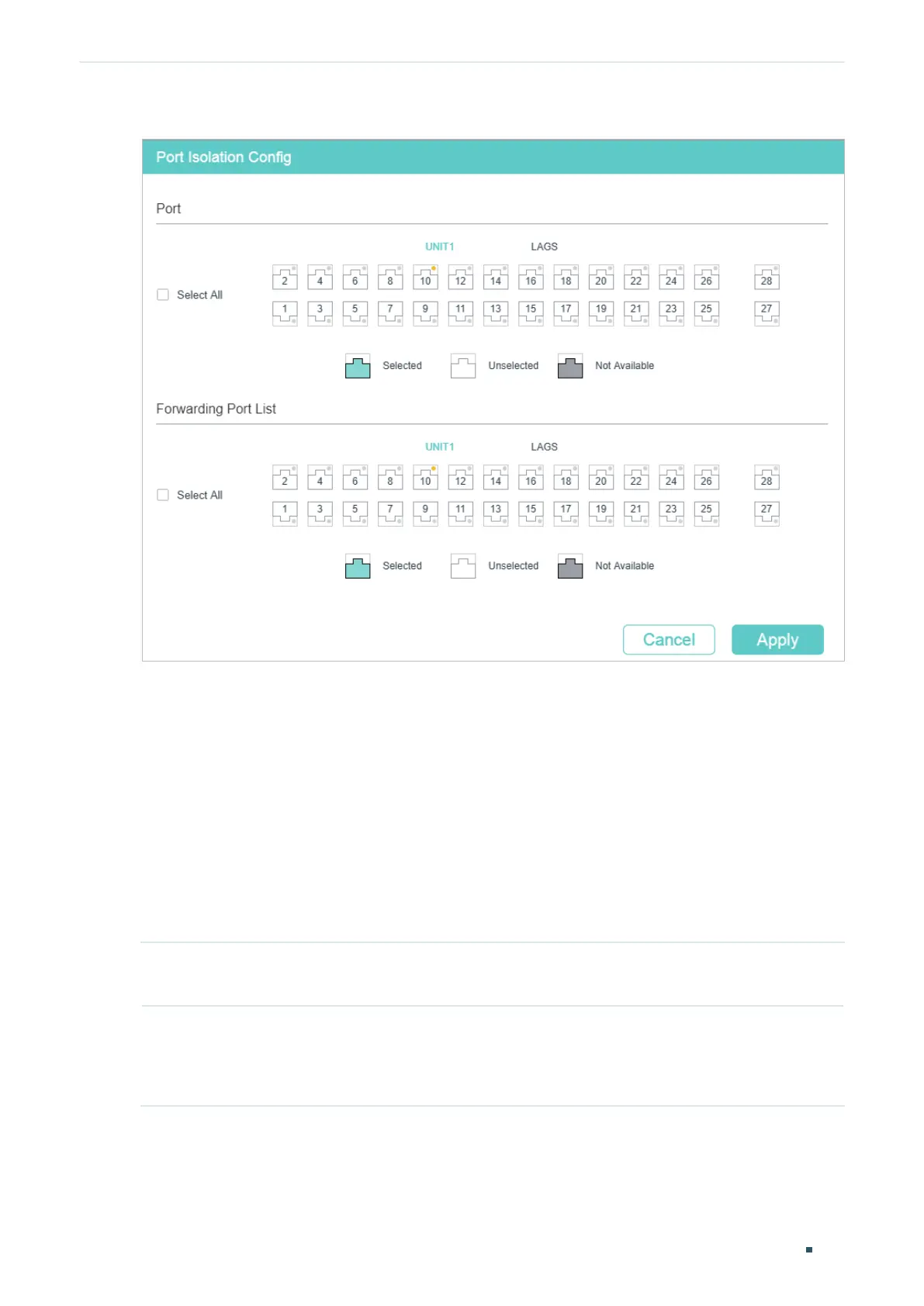 2)  In the Forwarding Port List section, select the forwarding ports or LAGs which the