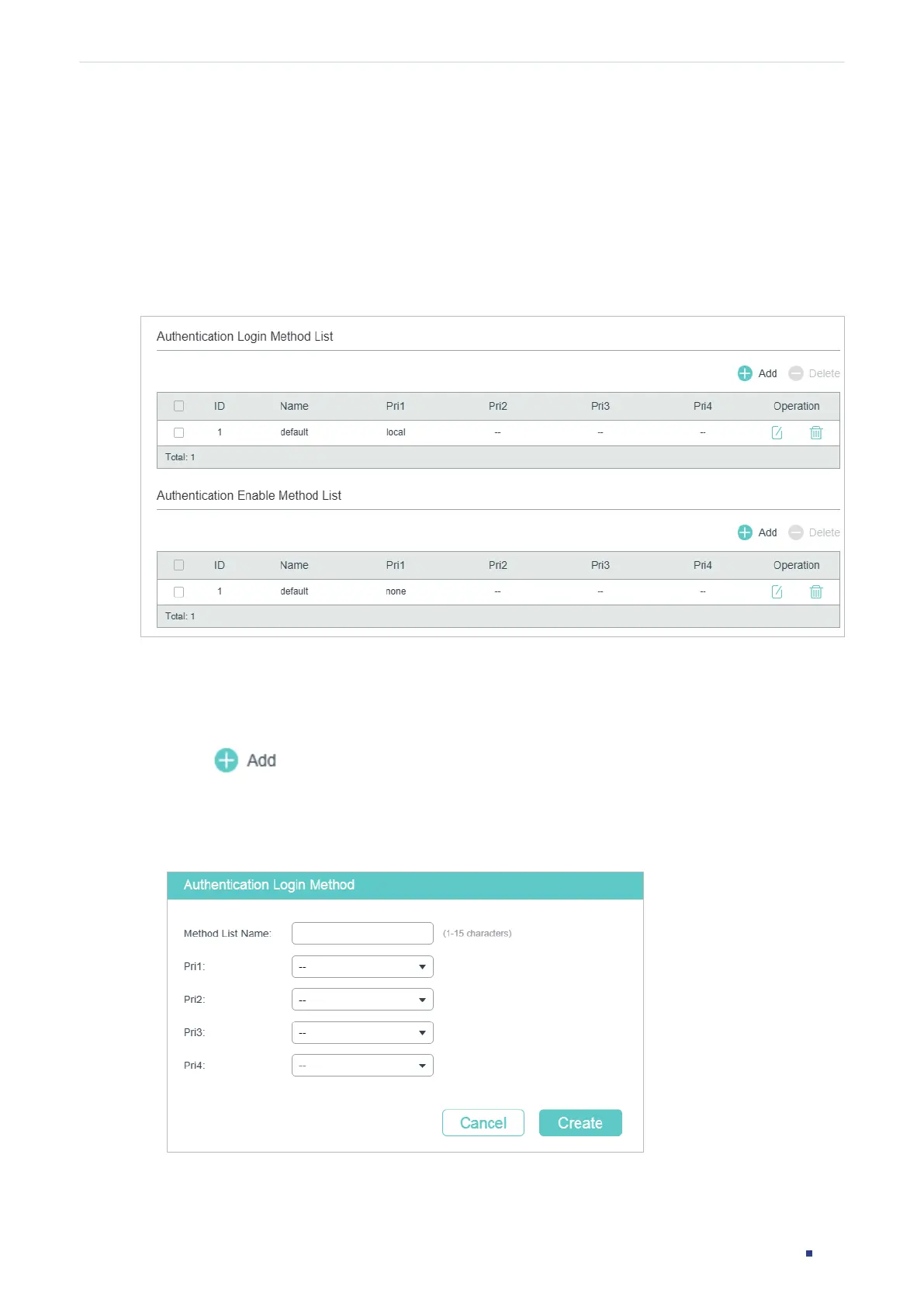 Choose the menu SECURITY > AAA > Method List to load the following page.