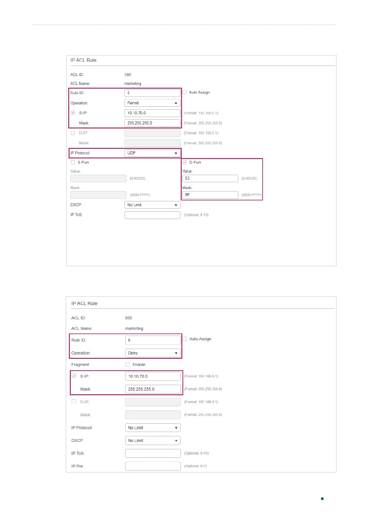 7) In the same way, configure rule 6 to deny packets with source IP 10.10.70.0.