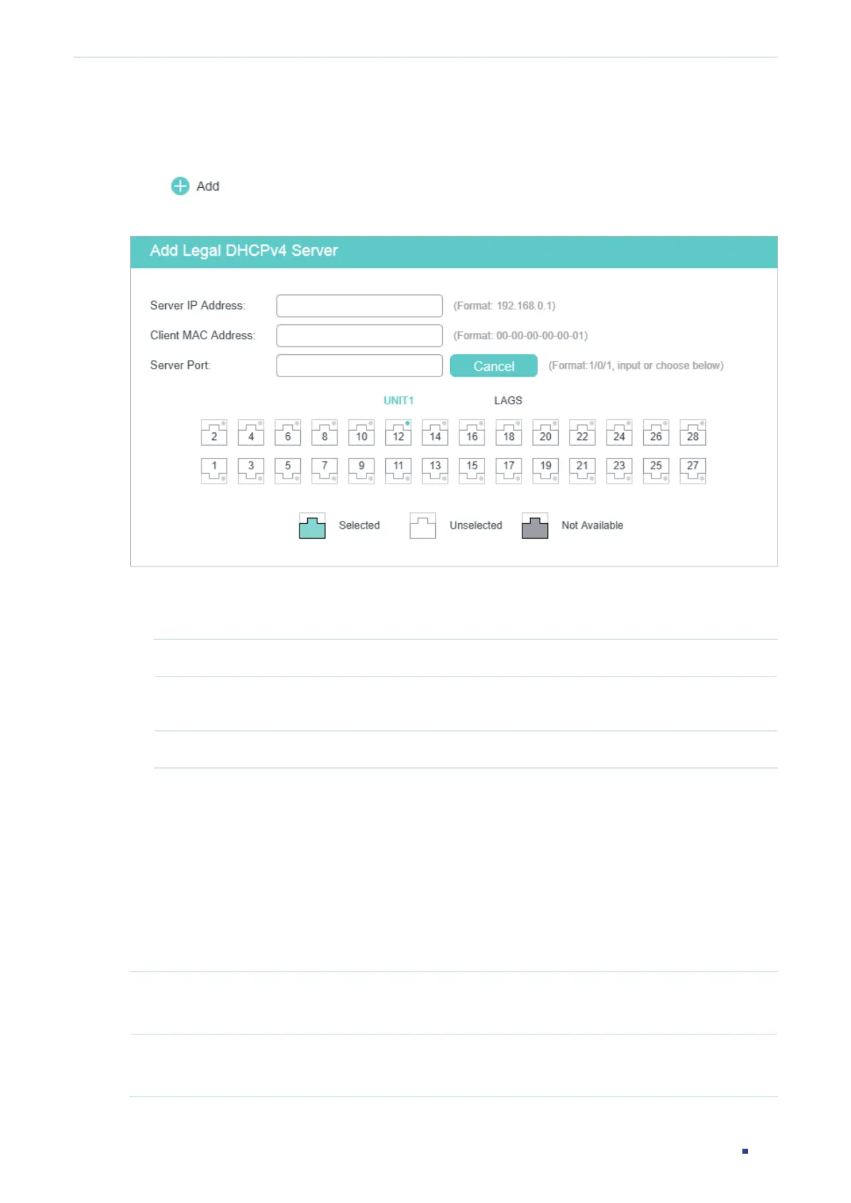 Choose the menu SECURITY > DHCP Filter > DHCPv4 Filter > Legal DHCPv4 Servers and