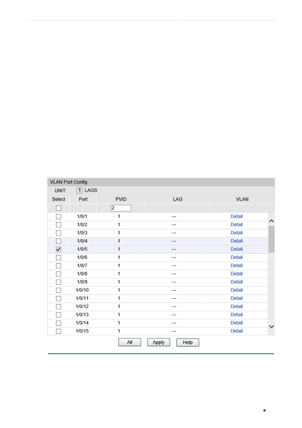 Choose the menu VLAN > 802.1Q VLAN > Port Config to load the following page.