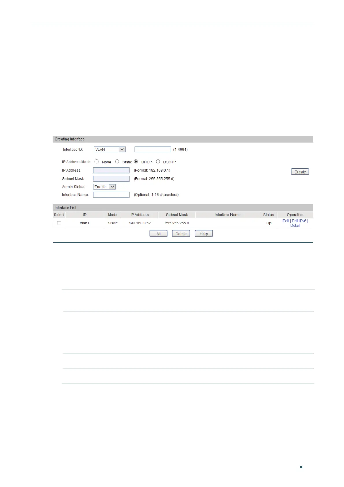 1) In the Creating Interface section, select Interface VLAN or Routed Port as the interface