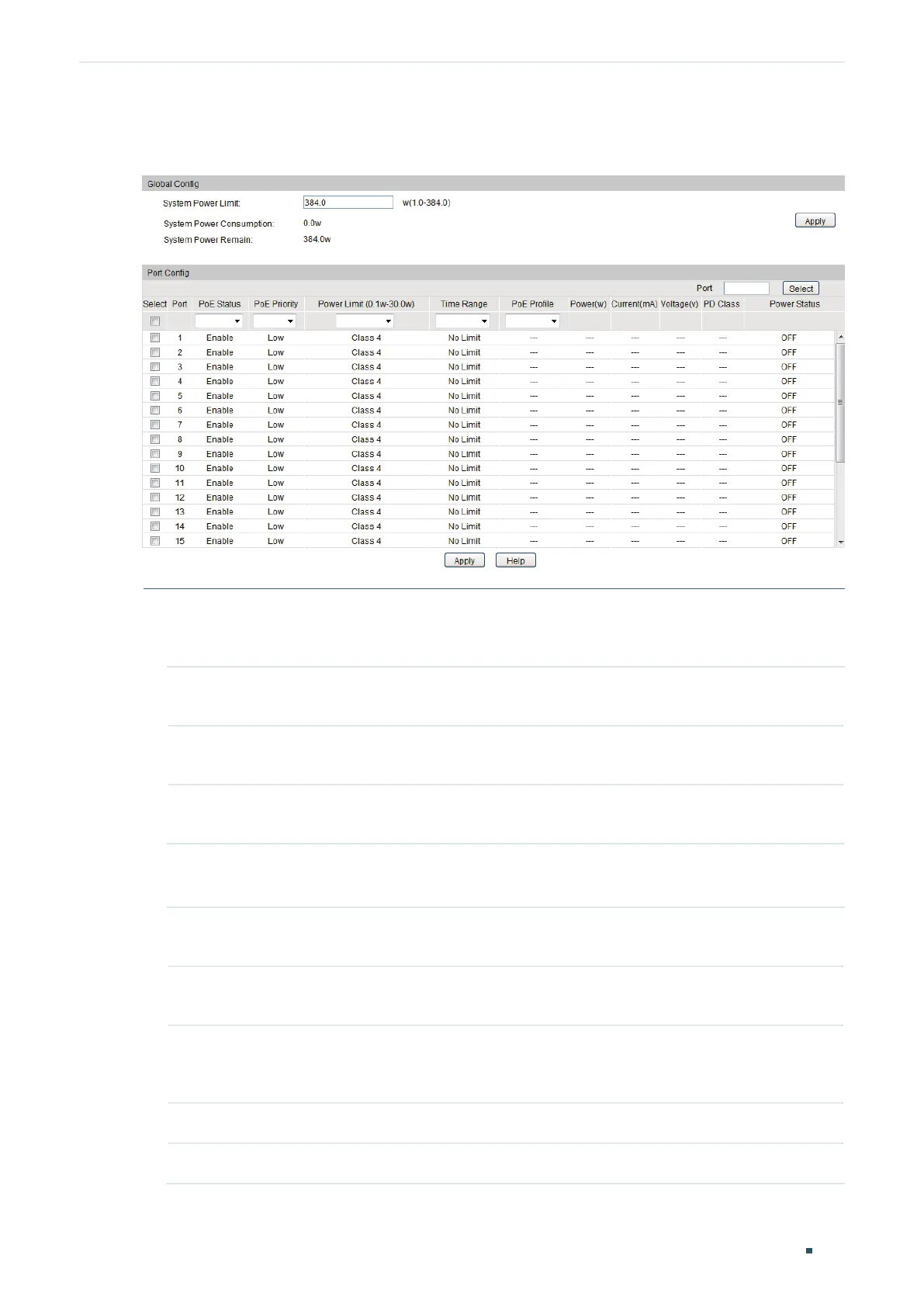 profile is selected, you will not be able to modify PoE status, PoE priority or power