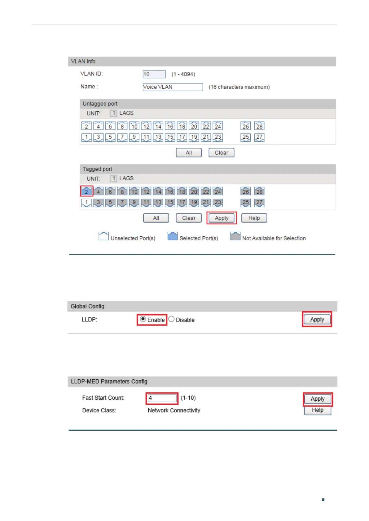 6) Choose the menu LLDP > LLDP-MED> Global Config to load the following page. Set