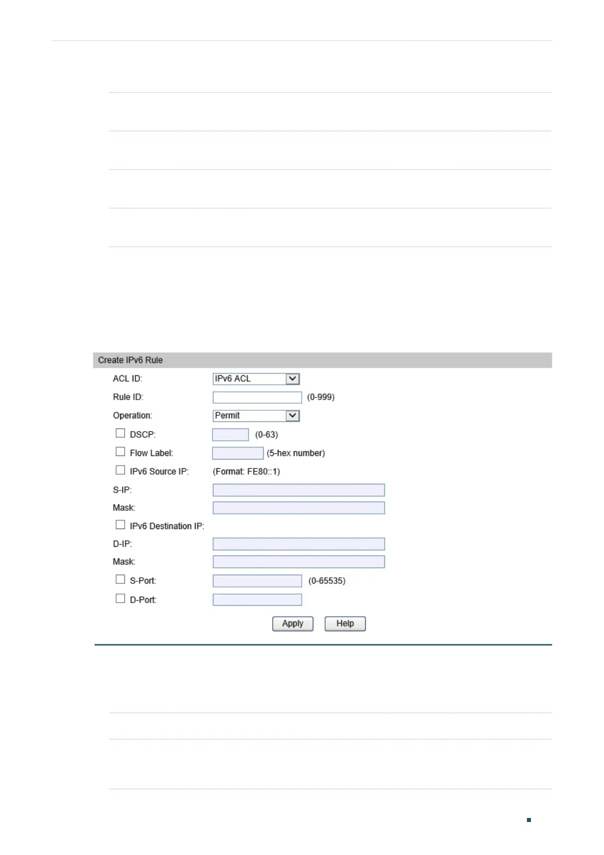 1)  Select an IPv6 ACL from the drop-down list, enter a Rule ID, and specify the operation