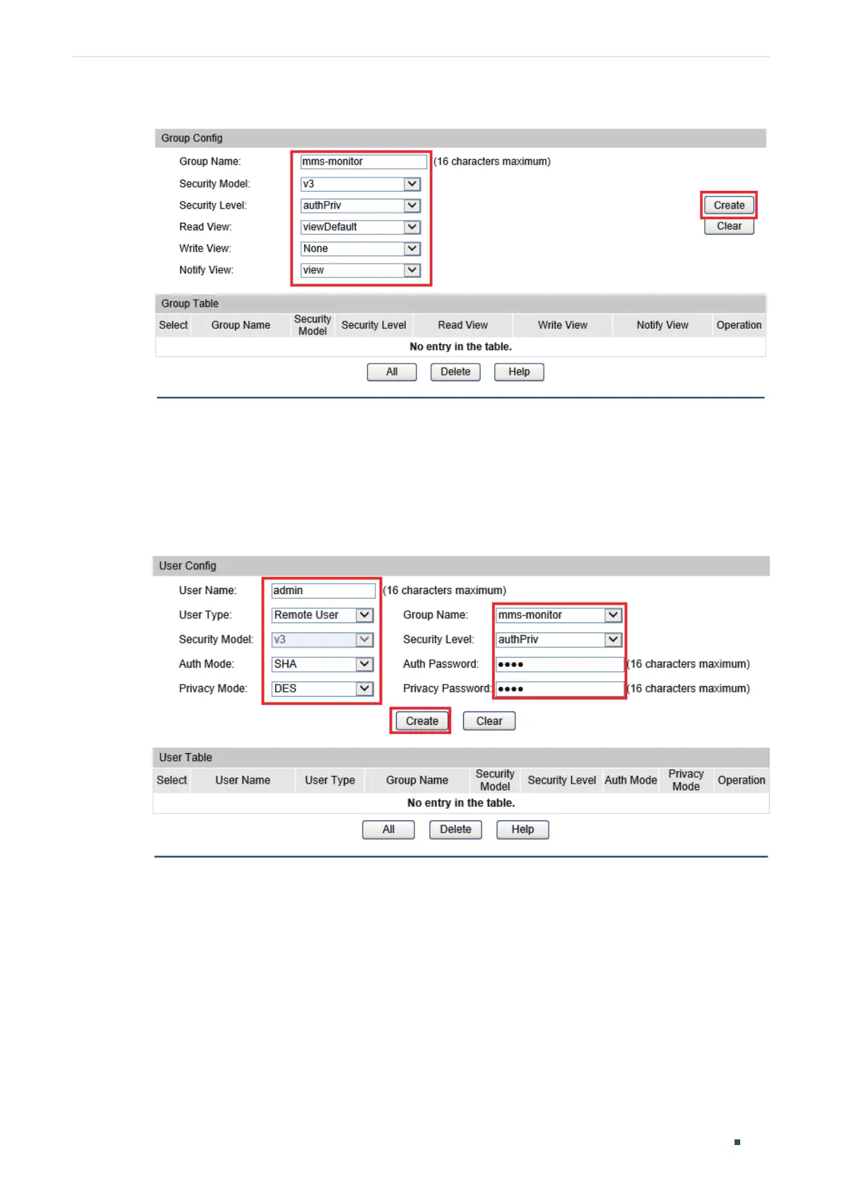 Figure 6-4 SNMP Group Configuration