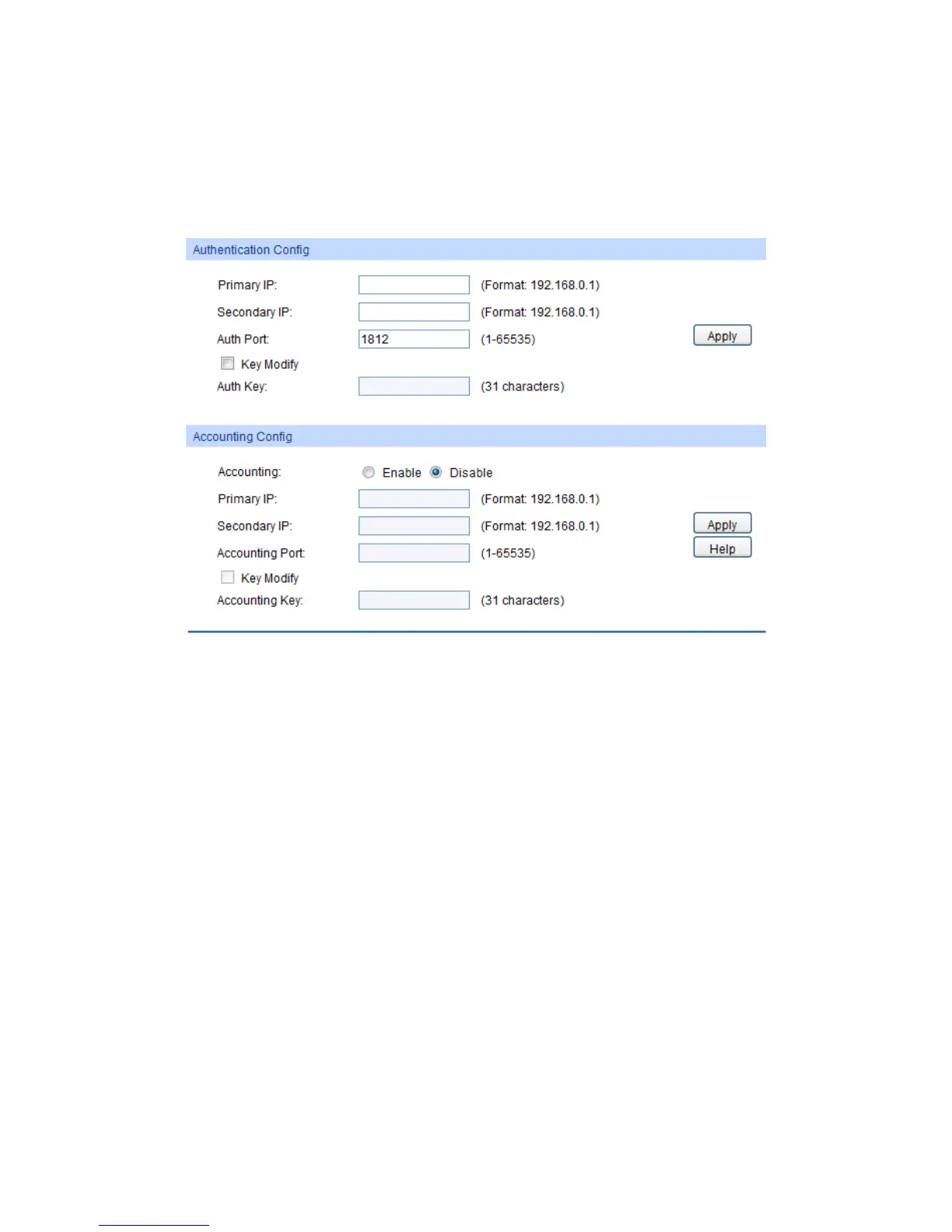 purpose to control the authentication and accounting status of the clients. On this page, you can