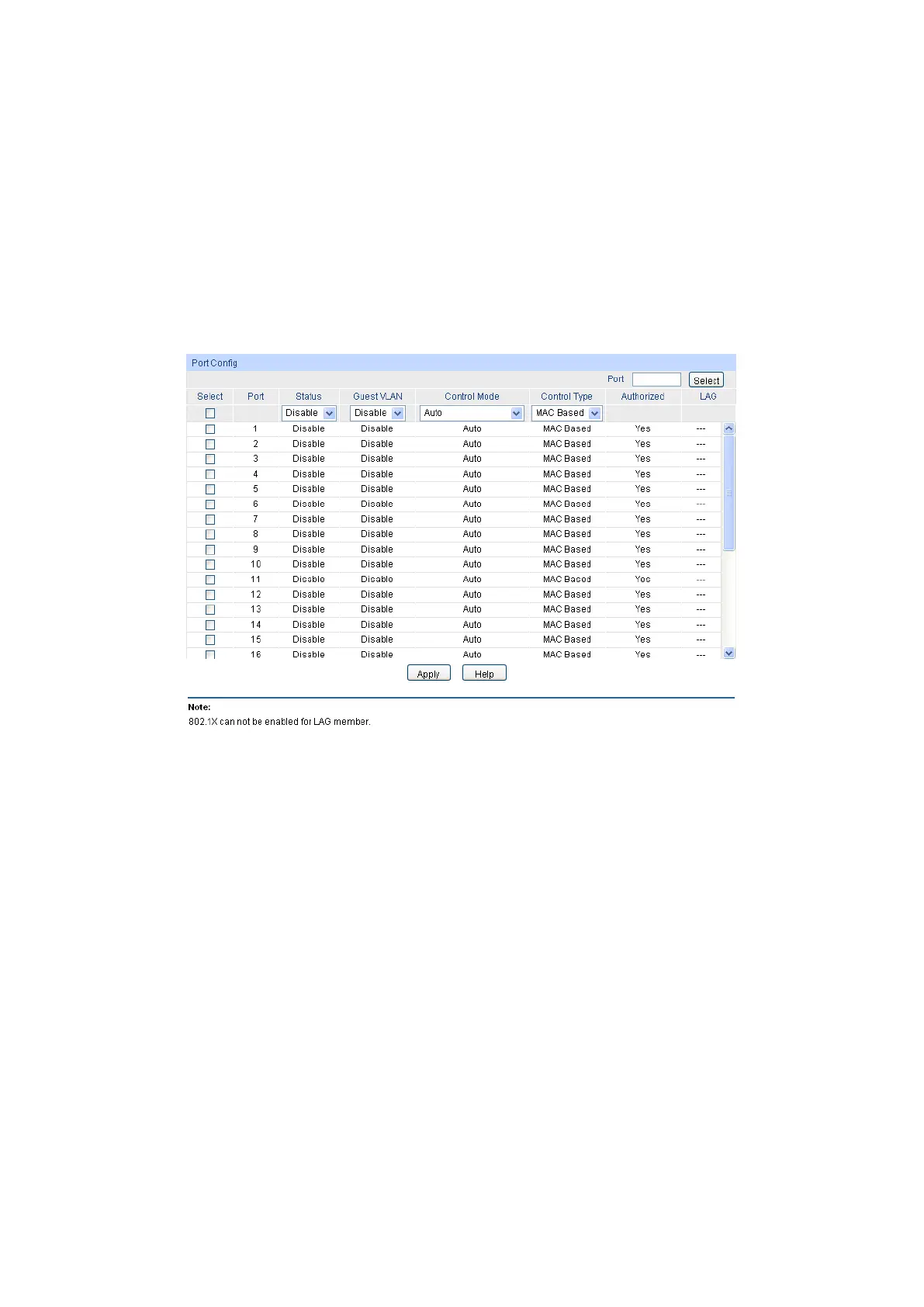 Choose the menu Network Security→802.1X→Port Config to load the following page.