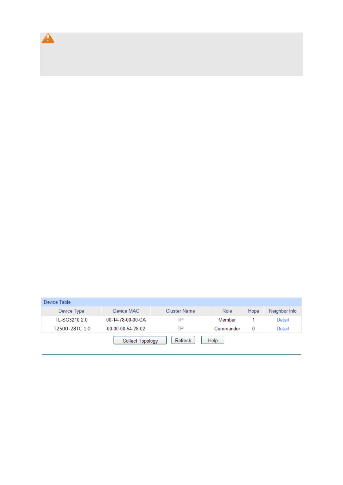 Choose the menu Cluster→NTDP→Device Table to load the following page.