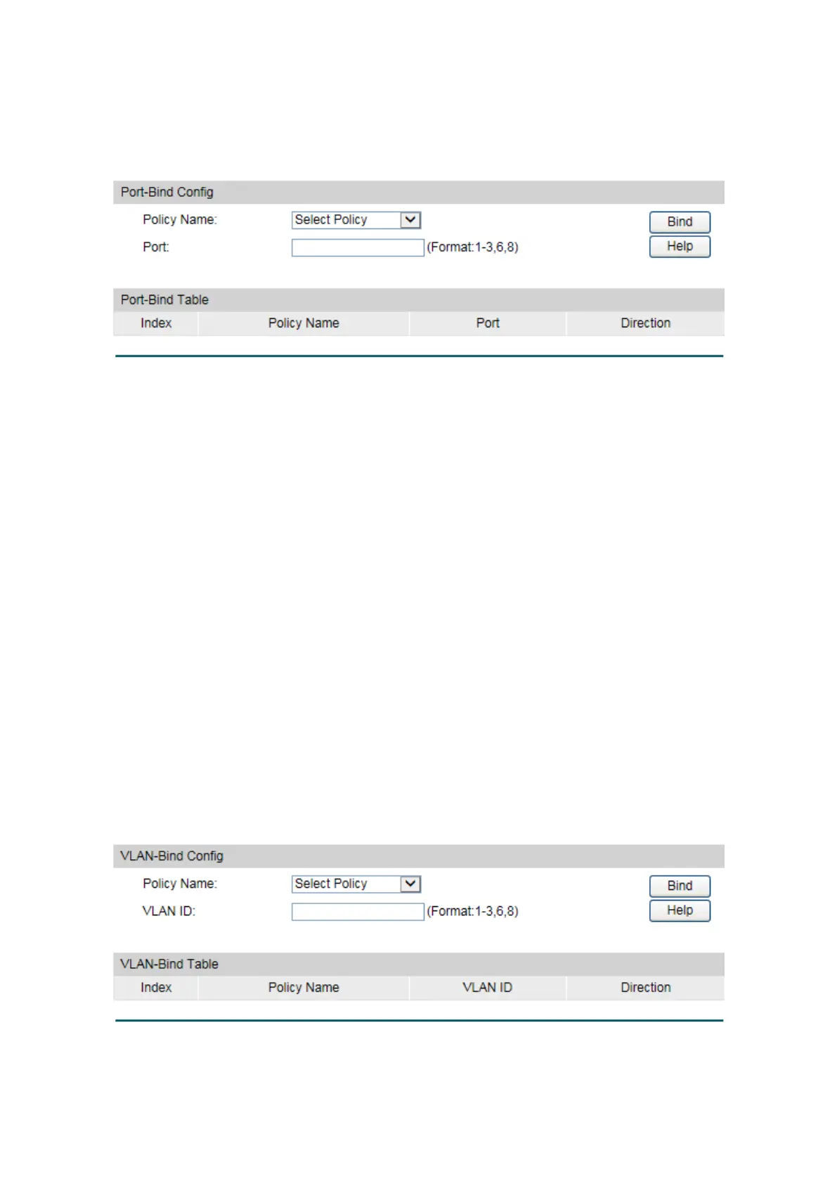 Choose the menu ACL→Policy Binding→VLAN Binding to load the following page.