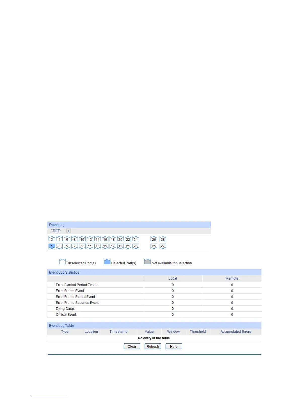 Choose the menu Ethernet OAM→Statistics→Event Log to load the following page.