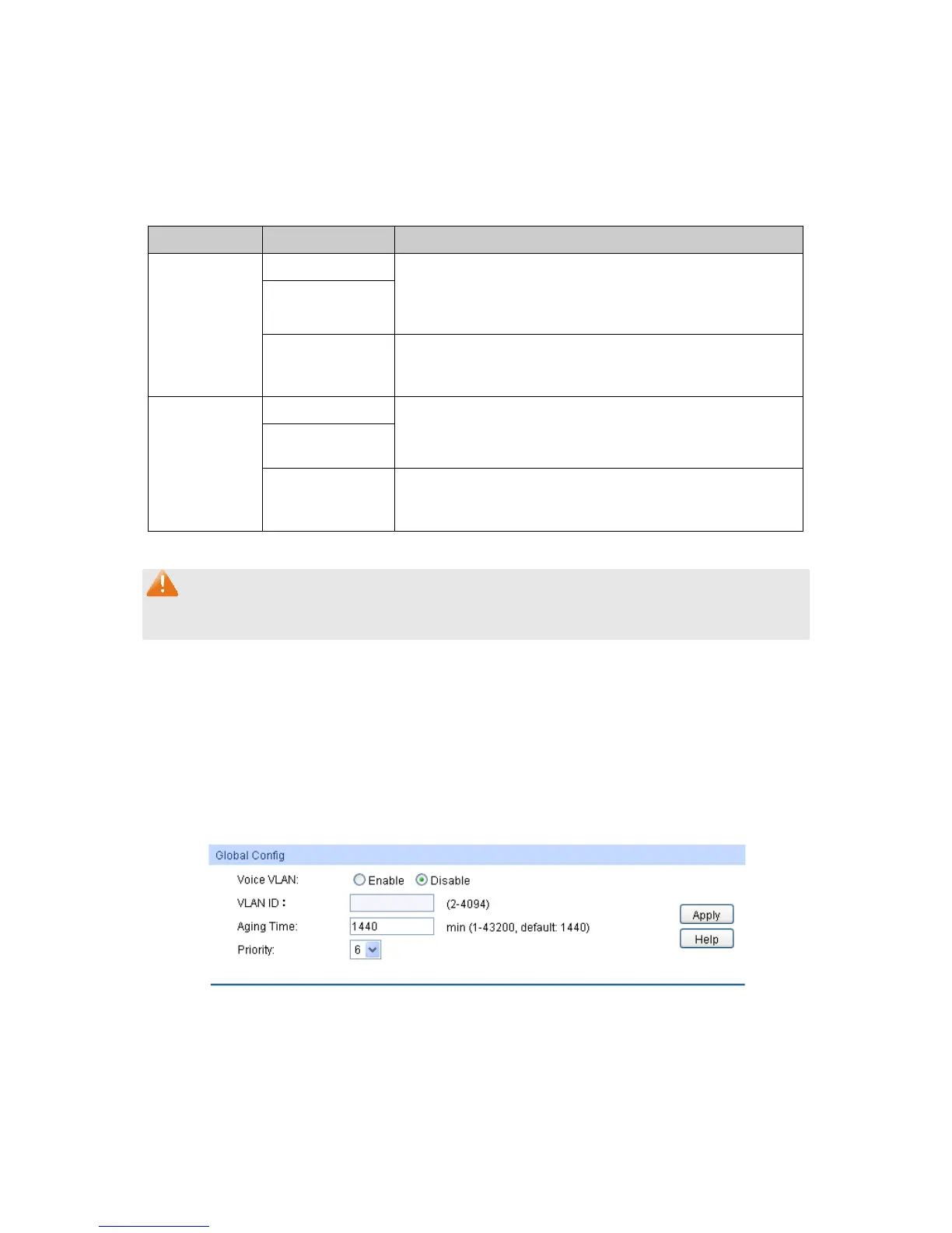 On this page, you can configure the global parameters of the voice VLAN, including VLAN ID and