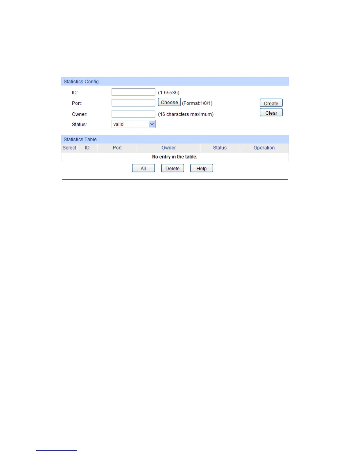 Enter the ID number of statistics entry, ranging from 1 to 65535.