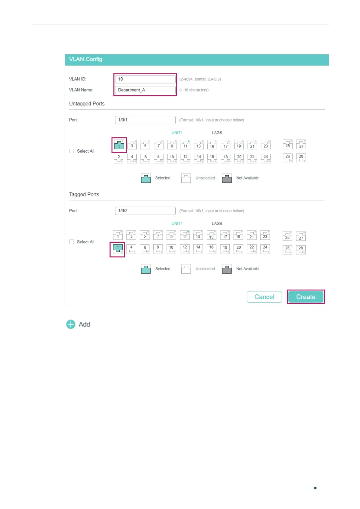 Figure 3-2 Creating VLAN 10