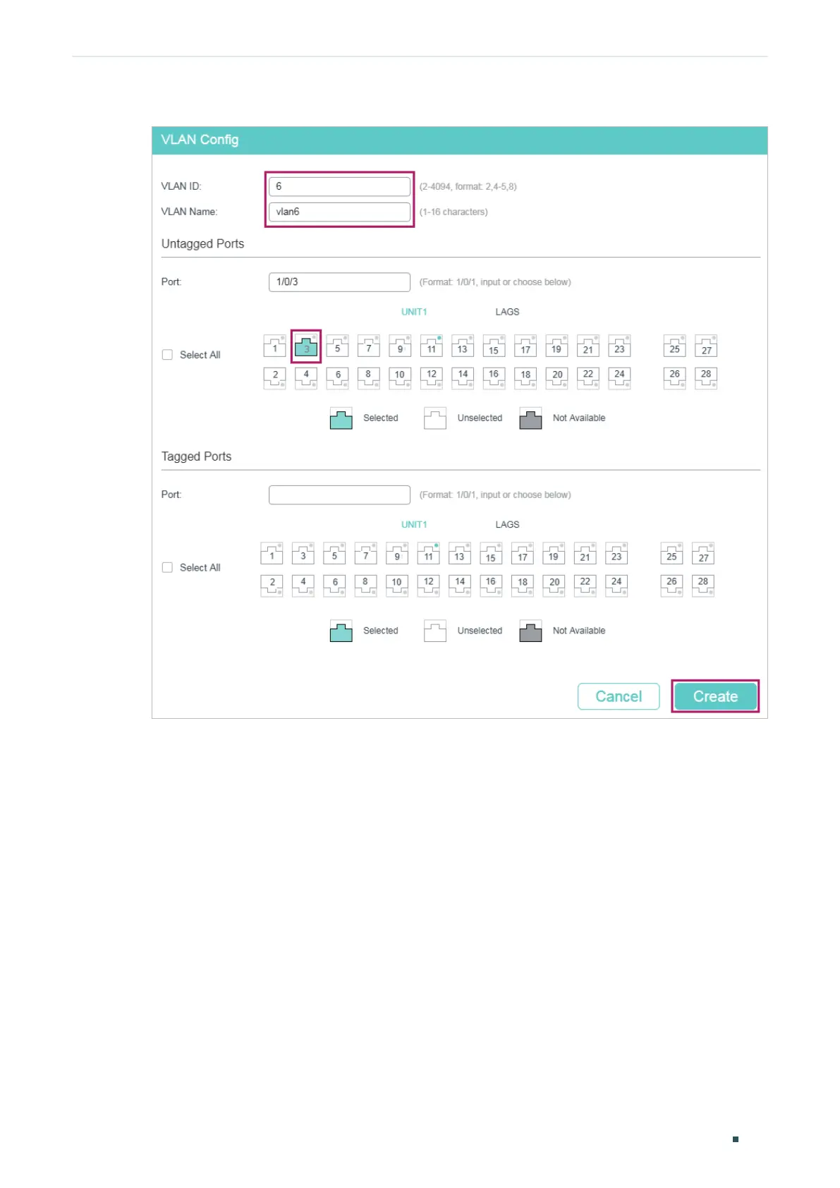 following page. Set the PVID of port 1/0/3 as 6. Click Apply.