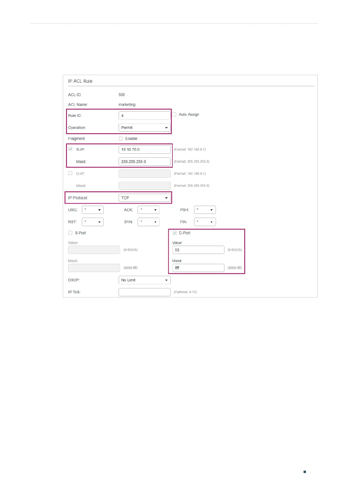 6) In the same way, configure rule 4 and rule 5 to permit packets with source IP 10.10.70.0