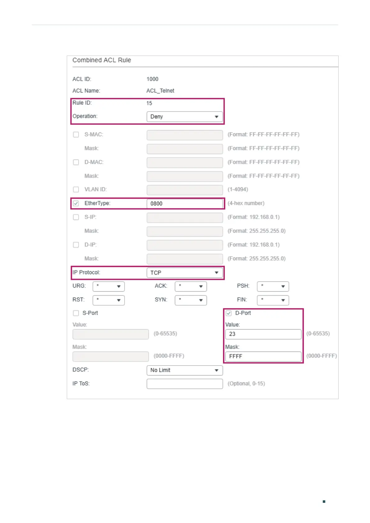 6) In the same way, configure rule 25 to permit all the packets. The rule makes sure that all