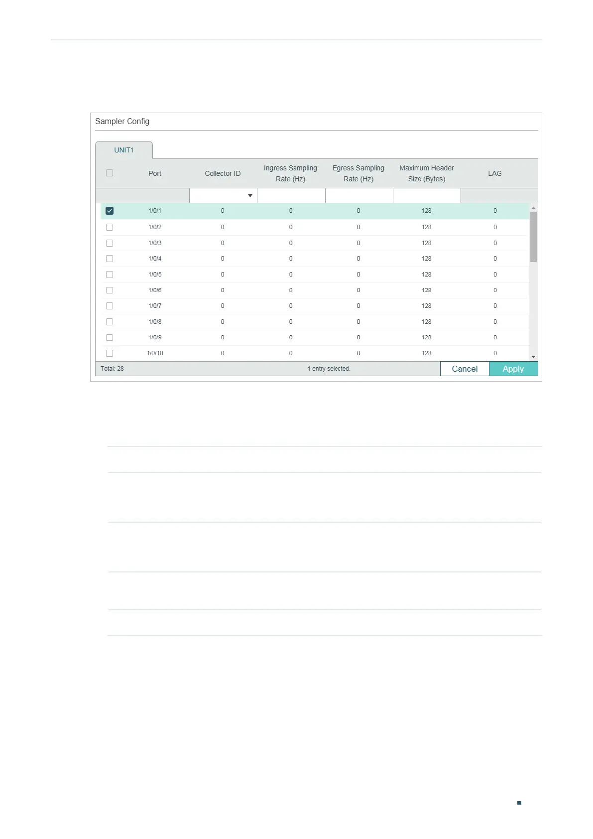 Choose the menu MAINTENANCE > sFlow> sFlow Sampler to load the following page.