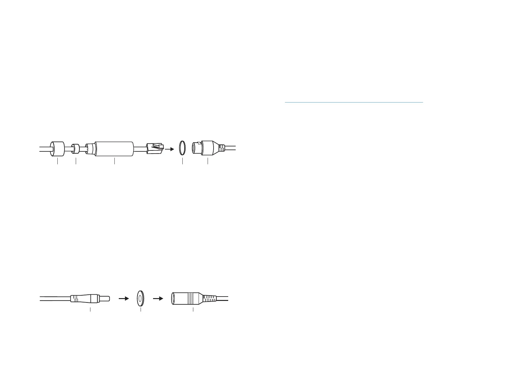 1. Route the network cable through the following components in order: x nut, waterproof ring, and then the waterproof jacket.