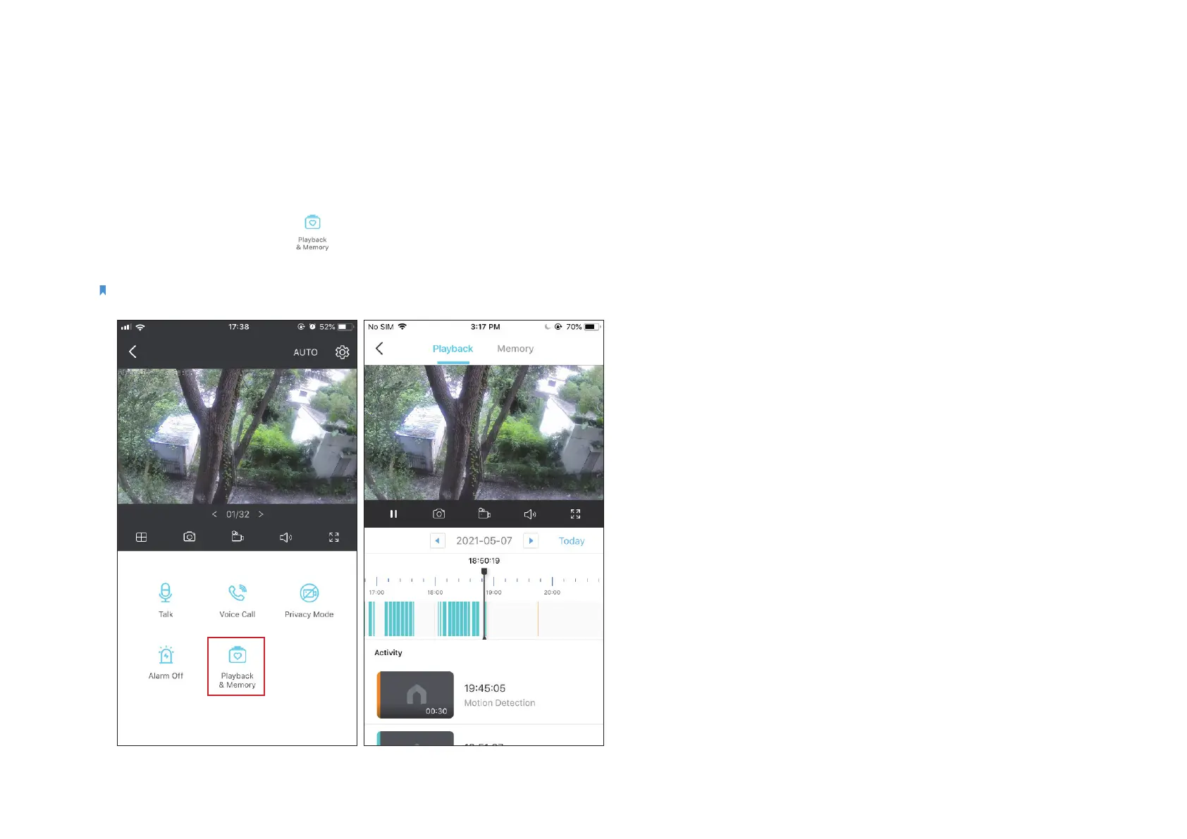 to find all recordings. Tap the colored sections or the video clips
