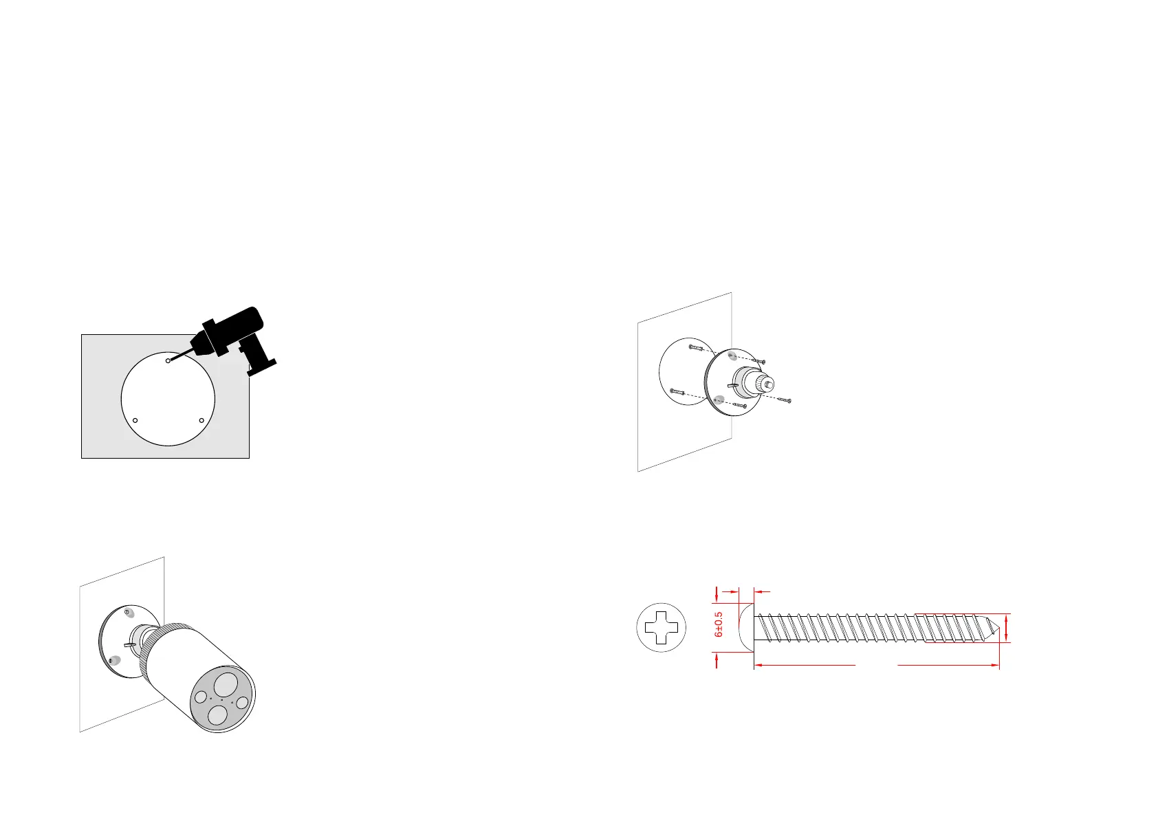 Stick the mounting template to the desired mounting place. Drill 3 screw