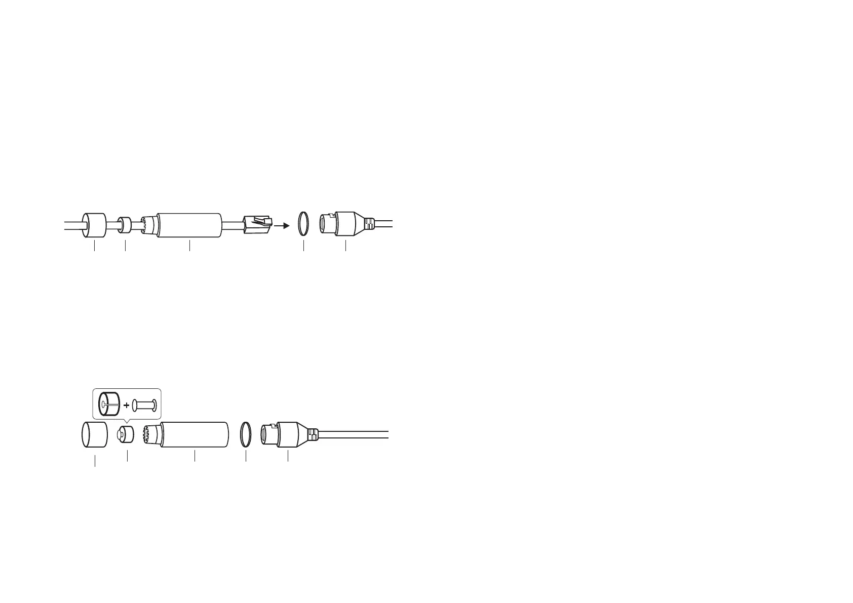 1. Insert the waterproof plug into the waterproof ring, then insert them into the waterproof jacket.