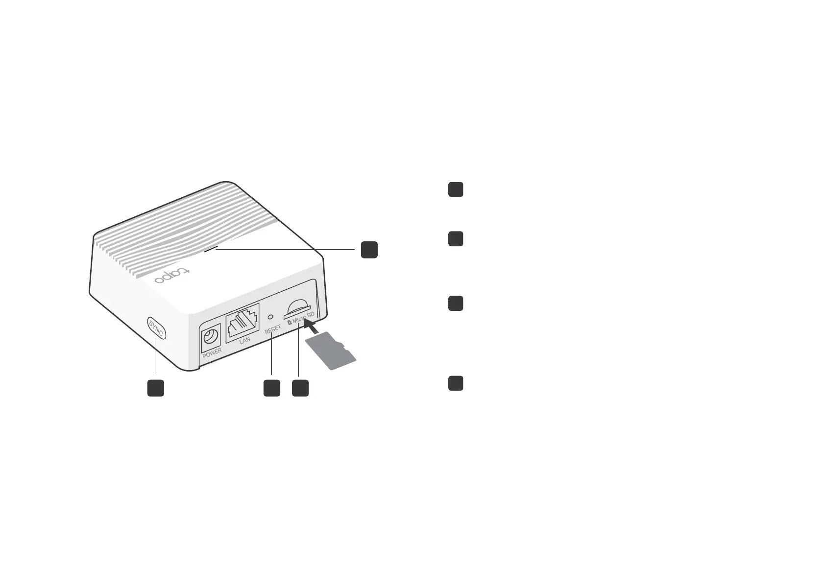 Insert a microSD card to record camera videos locally.