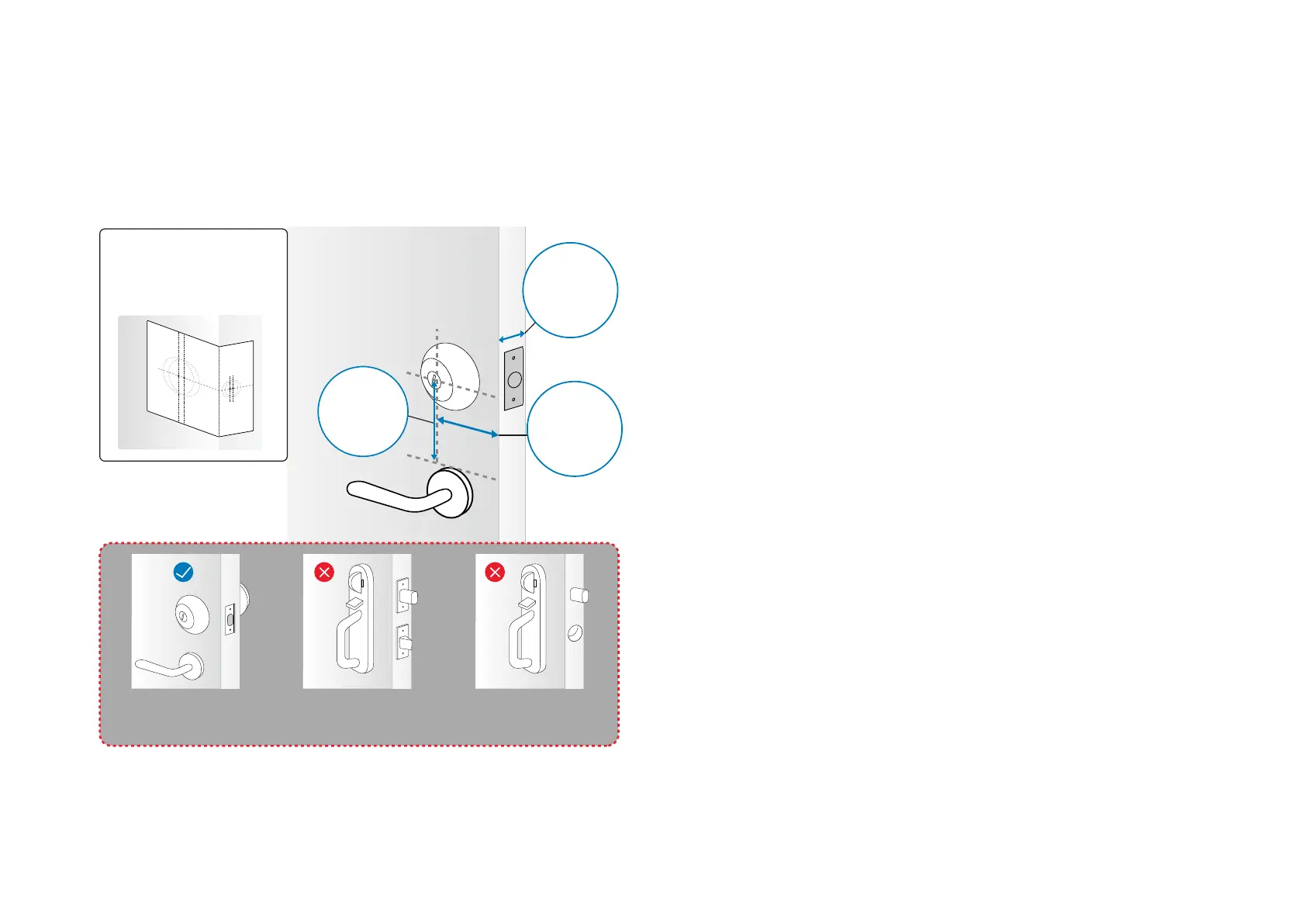 Place the measuring template on the door, aligning the door edge line with the door edge. Use the dimensions on the template to measure your door.