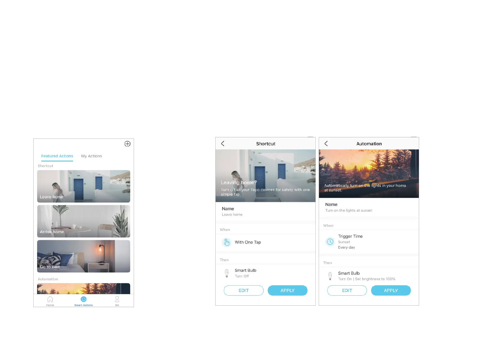it again. With Smart Actions, giving your home that level of intelligence is a snap. Shortcut lets you perform an action with a simple tap. Automation