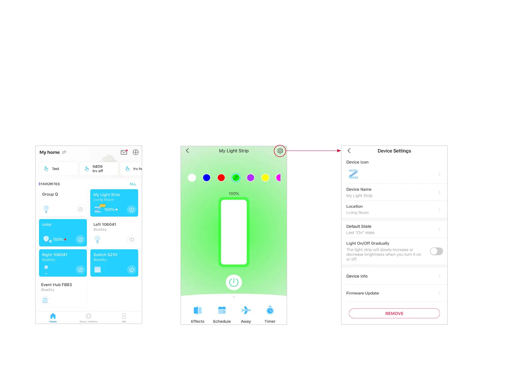 eects, create schedules, enable away mode, or