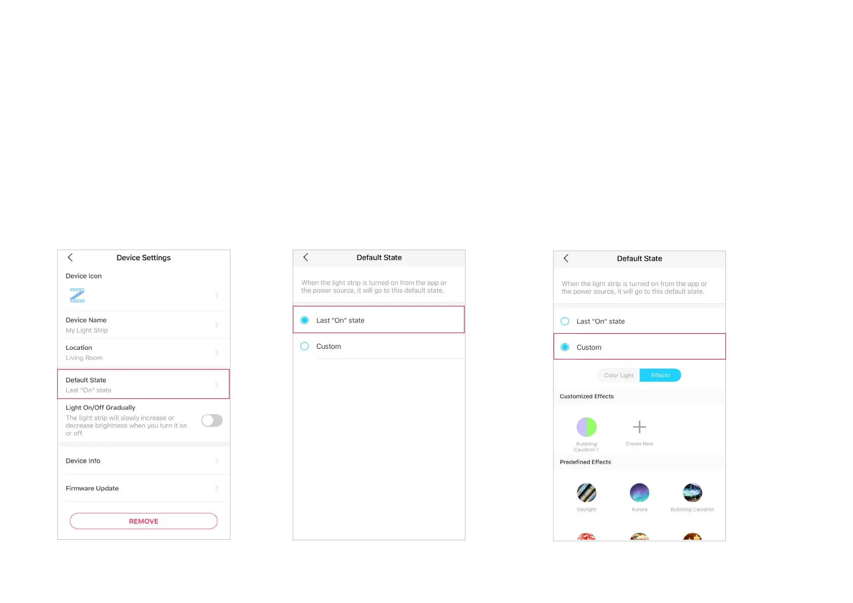 Last "On" state, the light strip will go to the