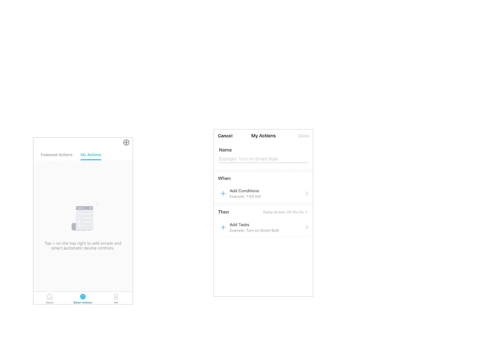 2. Name the new action. Tap + to add conditions (When) like the trigger time, and tap +