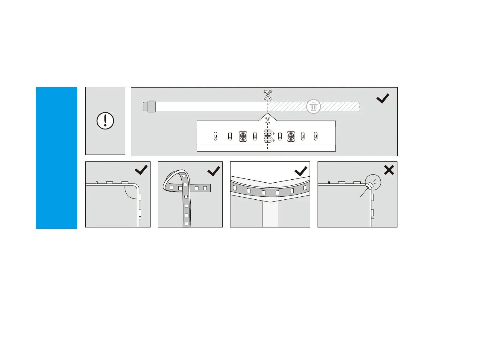 To avoid damaging your light strip, please note the following Installation Tips before installing the light strip.
