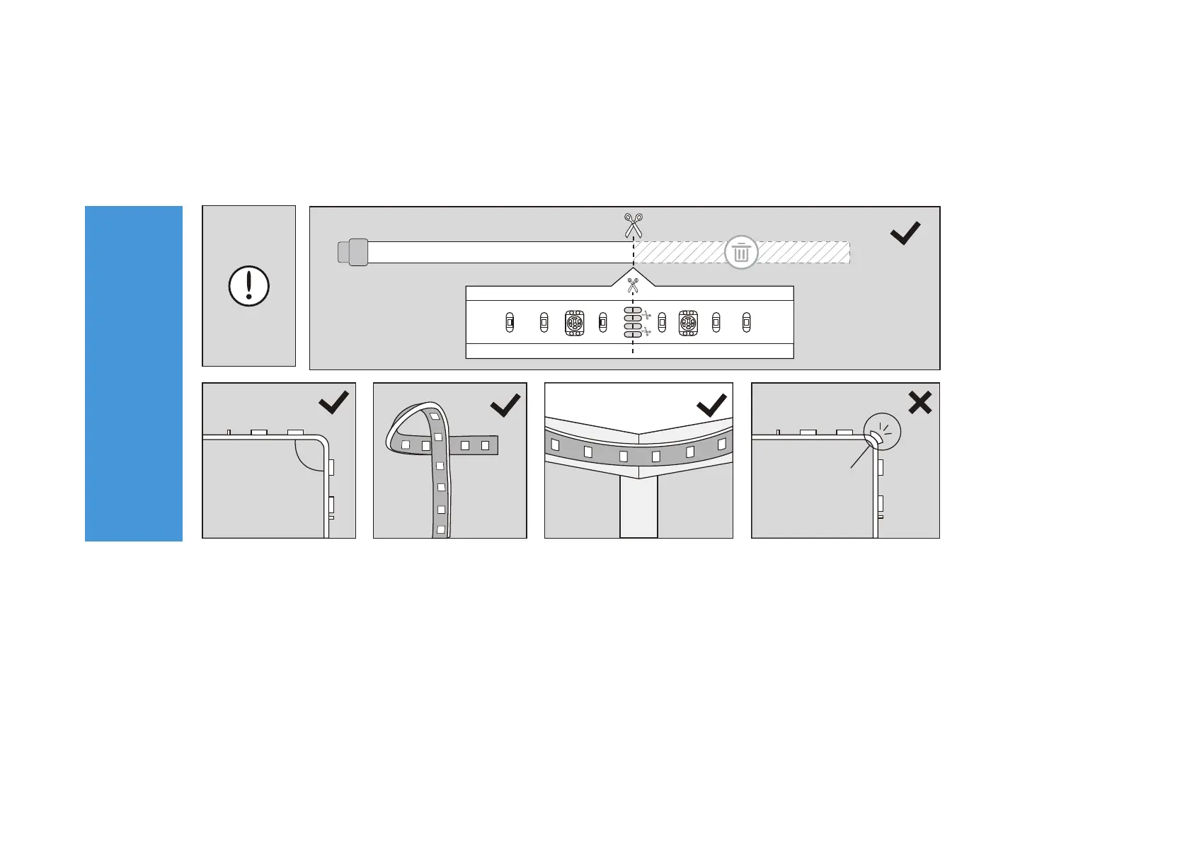 To avoid damaging your light strip, please note the following Installation Tips before installing the light strip.