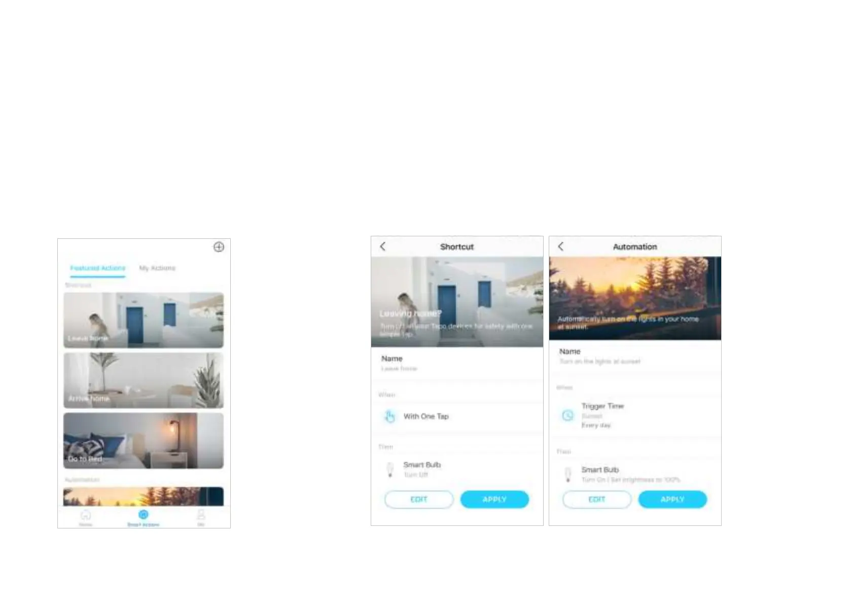 it again. With Smart Actions, giving your home that level of intelligence is a snap. Shortcut lets you perform an action with a simple tap. Automation
