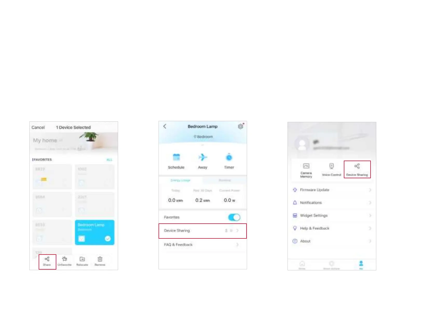 Go to Me page and tap Device Sharing to view