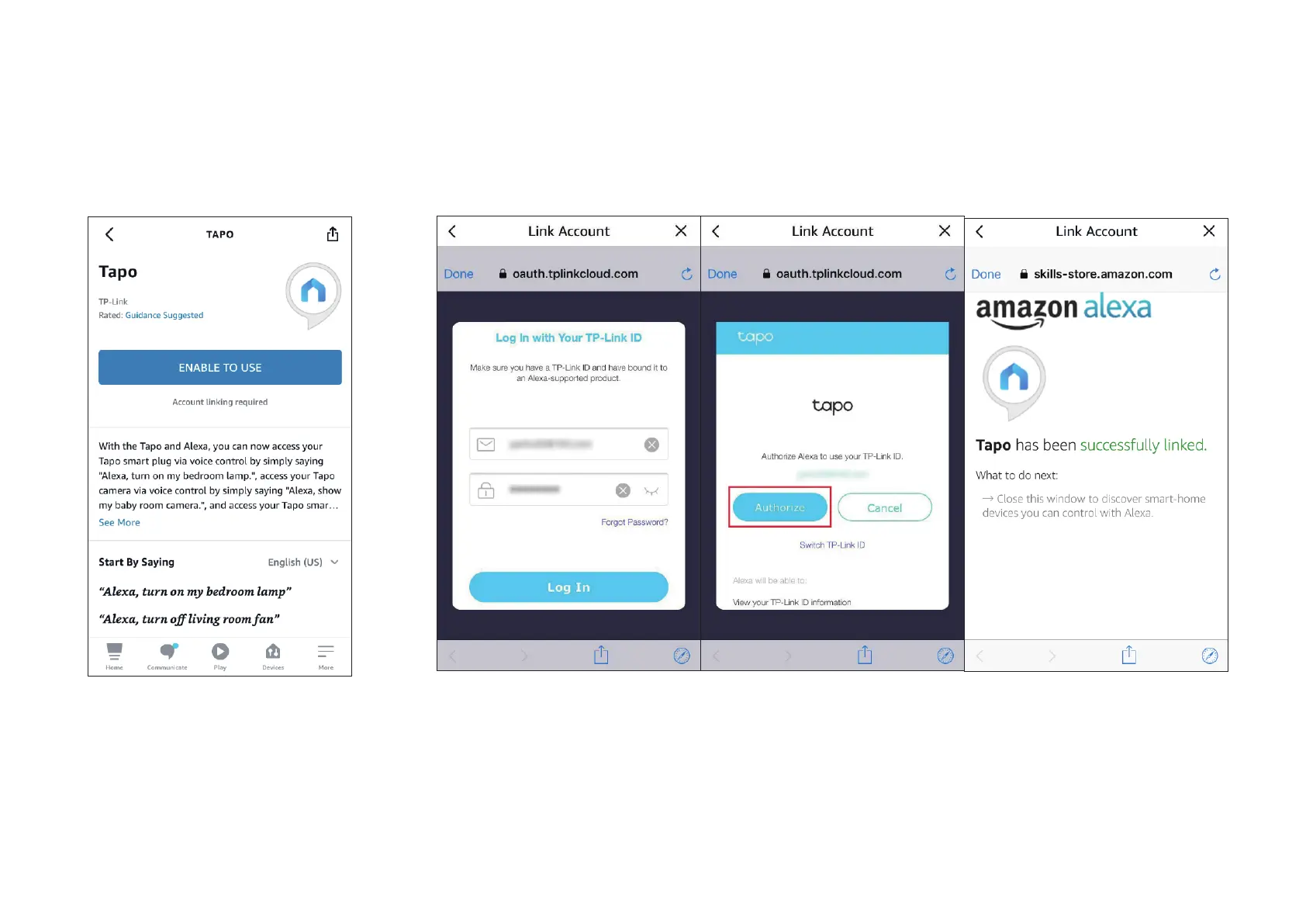 TP-Link Tapo P115 - Alexa App Setup: Authorization; Enabling and Authorizing Tapo Skill