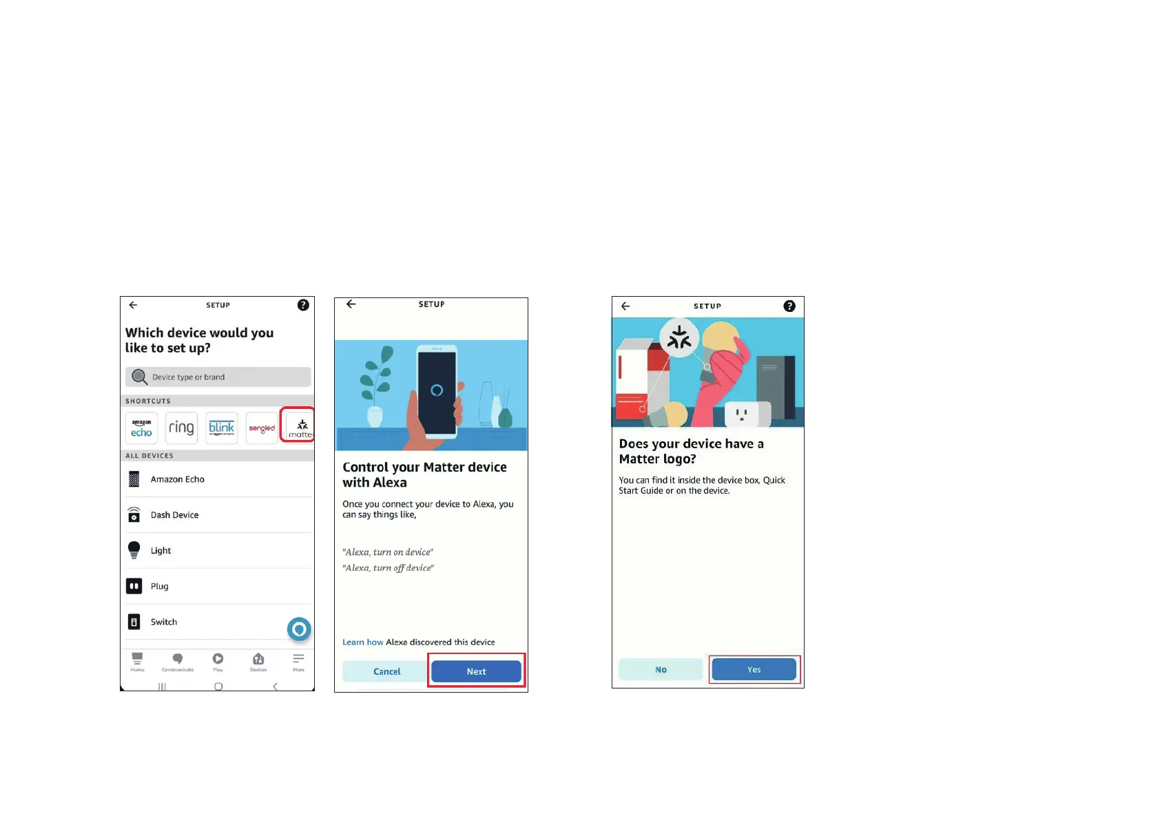 c. Choose Matter and then tap Next on the following pages. d. Tap Ye s on the conrming page.