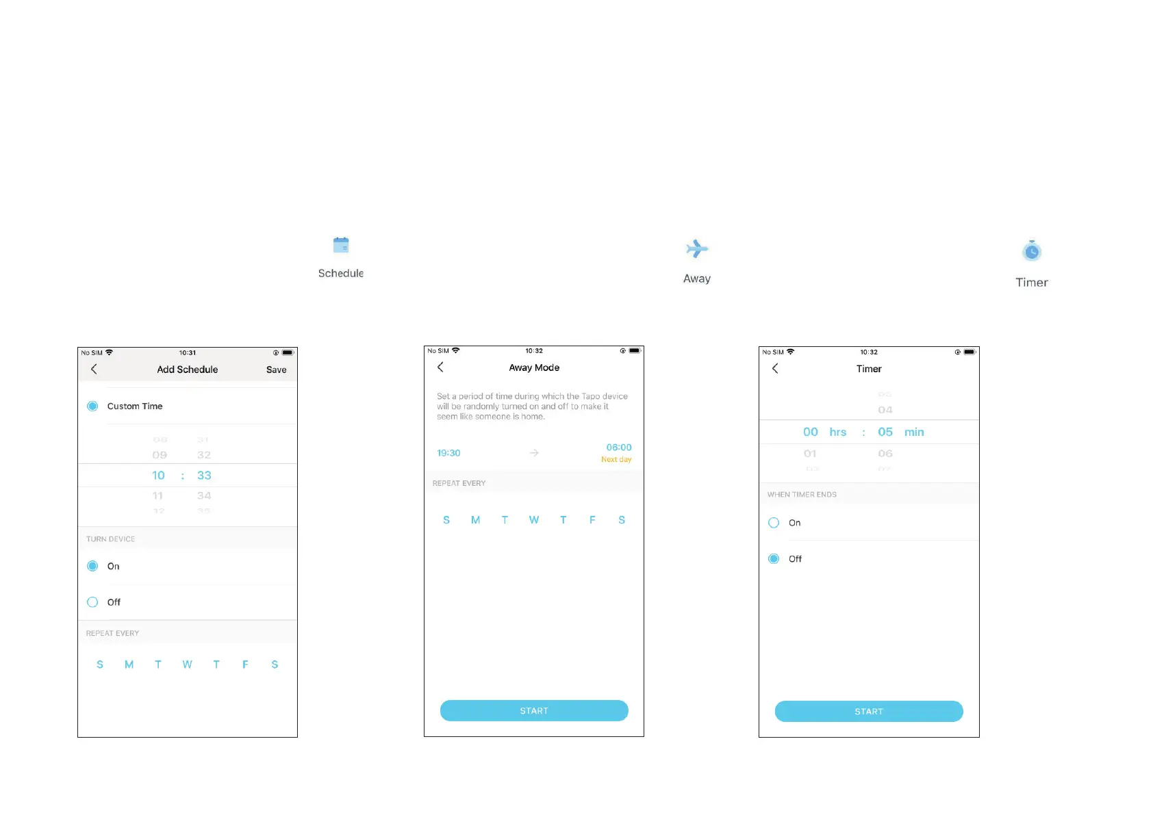 You can congure your smart plug by setting Schedule, Timer, Away Mode and more.
