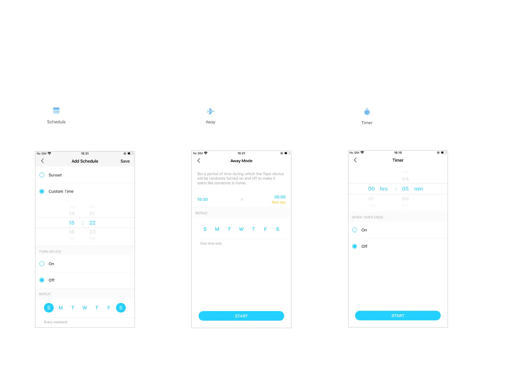 You can congure your smart power strip by setting Schedule, Away Mode, Timer, and more.