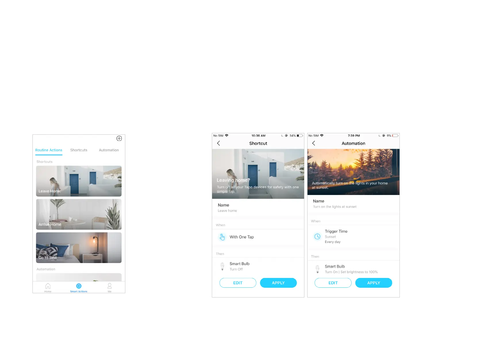it again. With Smart Actions, giving your home that level of intelligence is a snap. Shortcut lets you perform an action with a simple tap. Automation