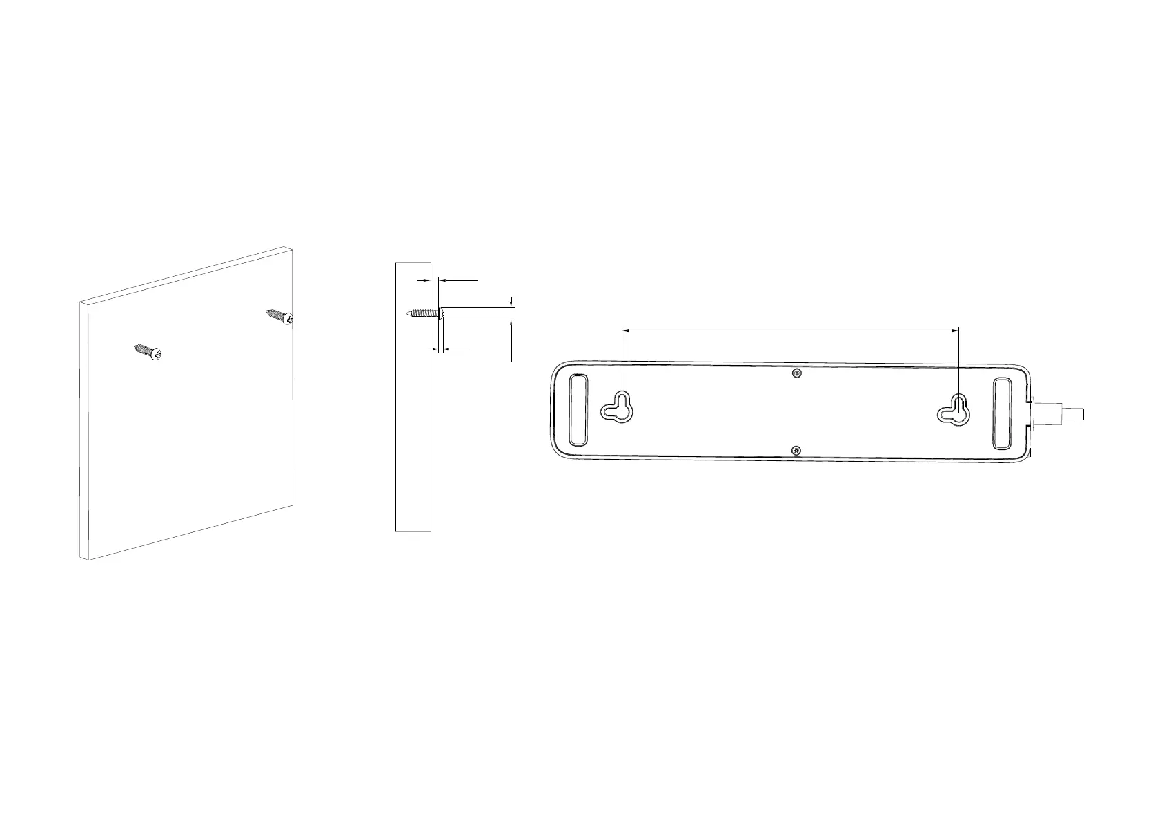 Generally, the power strip is placed on a horizontal surface, such as a shelf or desktop. The device also can be mounted on the wall as shown below.