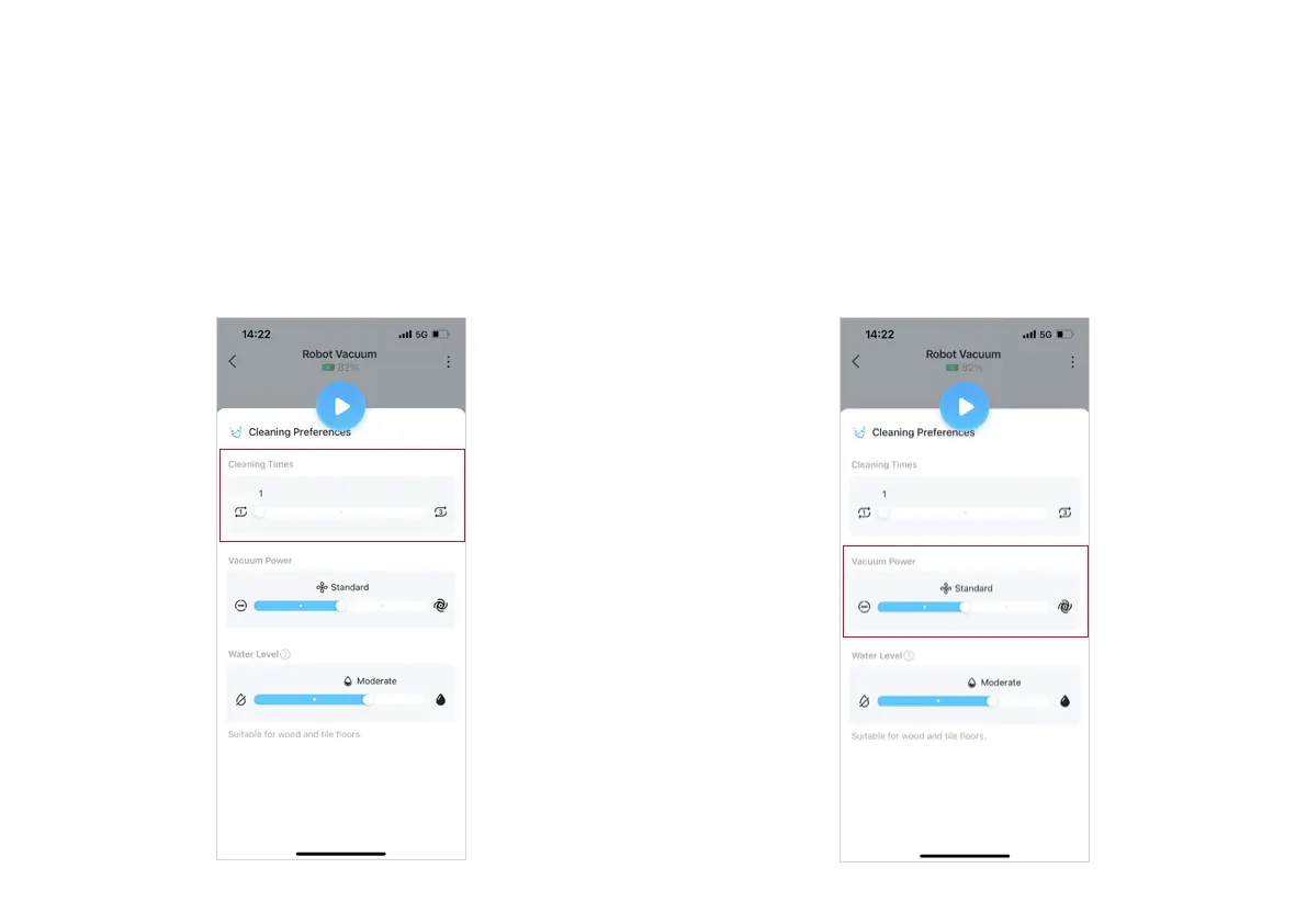 TP-Link Tapo RV10 - Customizing Cleaning Preferences; Setting Cleaning Times; Selecting Vacuum Power