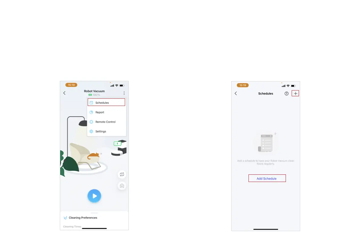 Add cleaning schedules to have your robot vacuum clean oors regularly.