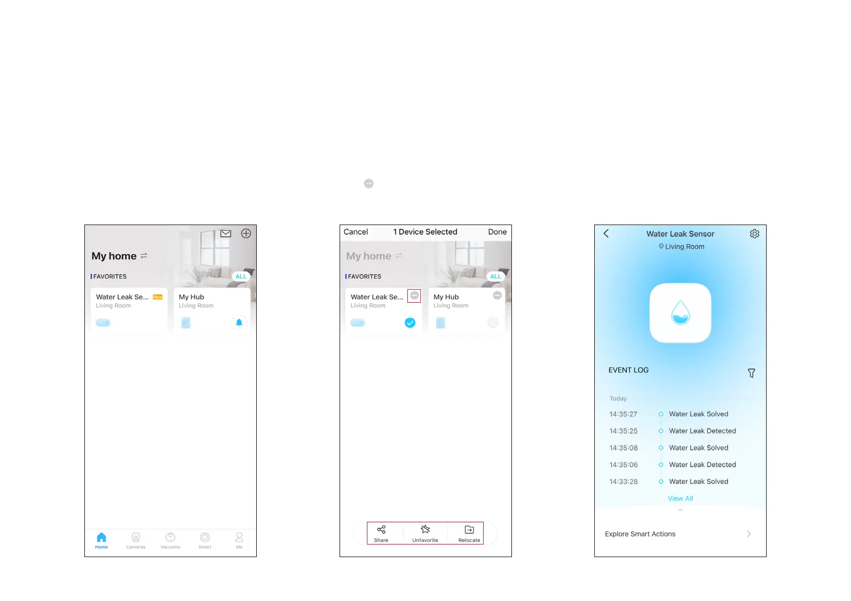 After you successfully set up your hub and sensor, you will see your devices listed on the home page. With the Tapo app, you can view and manage
