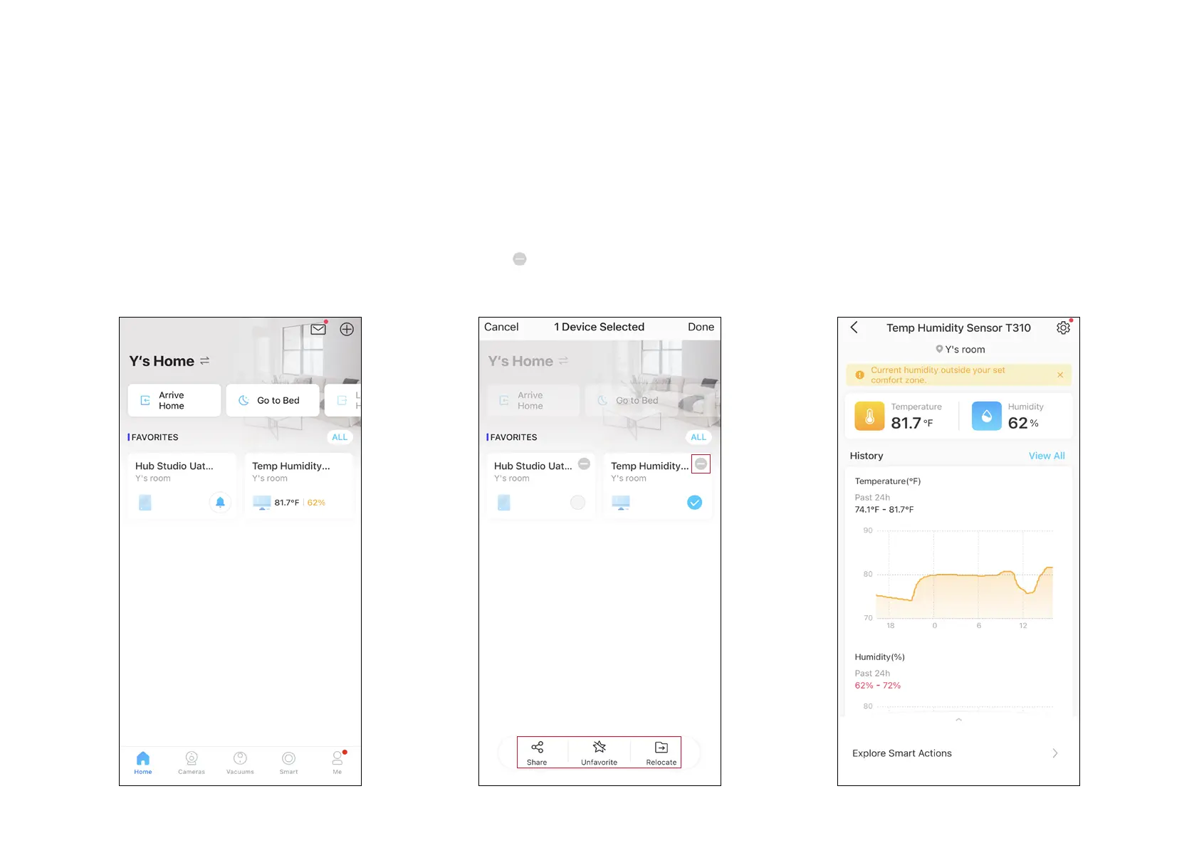 After you successfully set up your hub and sensor, you will see your devices listed on the home page. With the Tapo app, you can view and manage