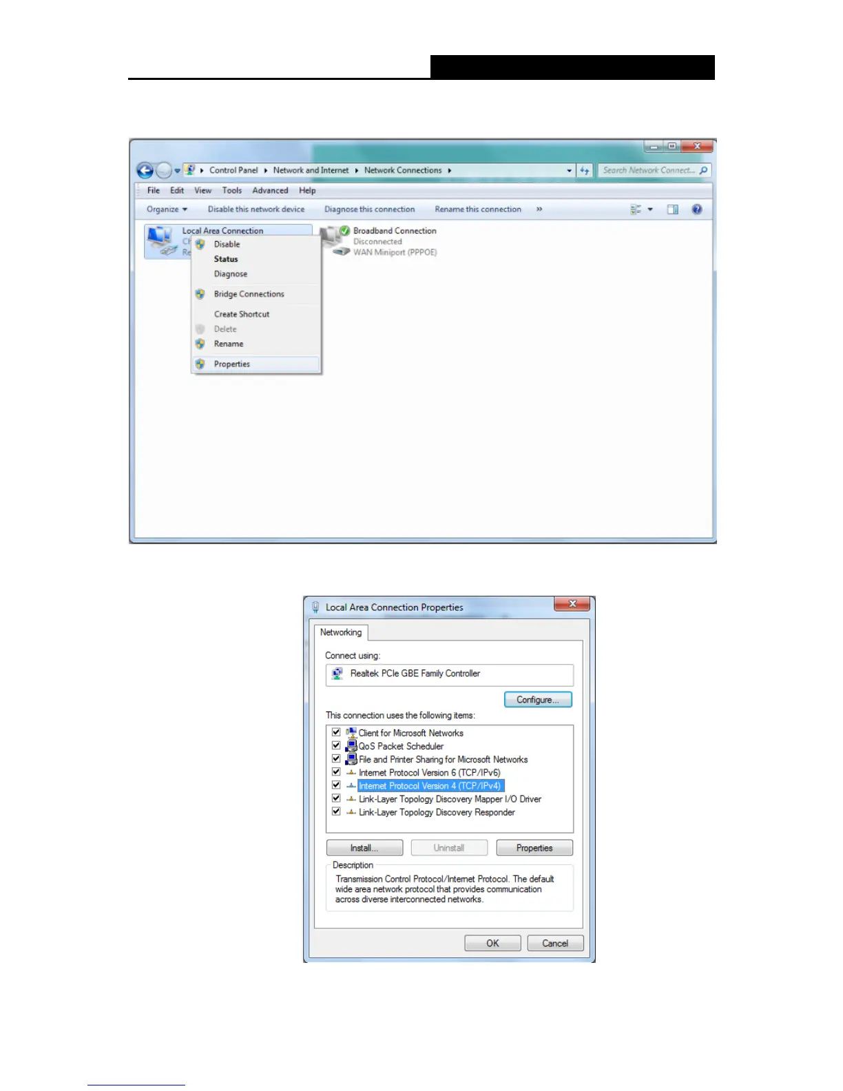2. Right-click your wired network connection (Local Area Connection or Ethernet by default),