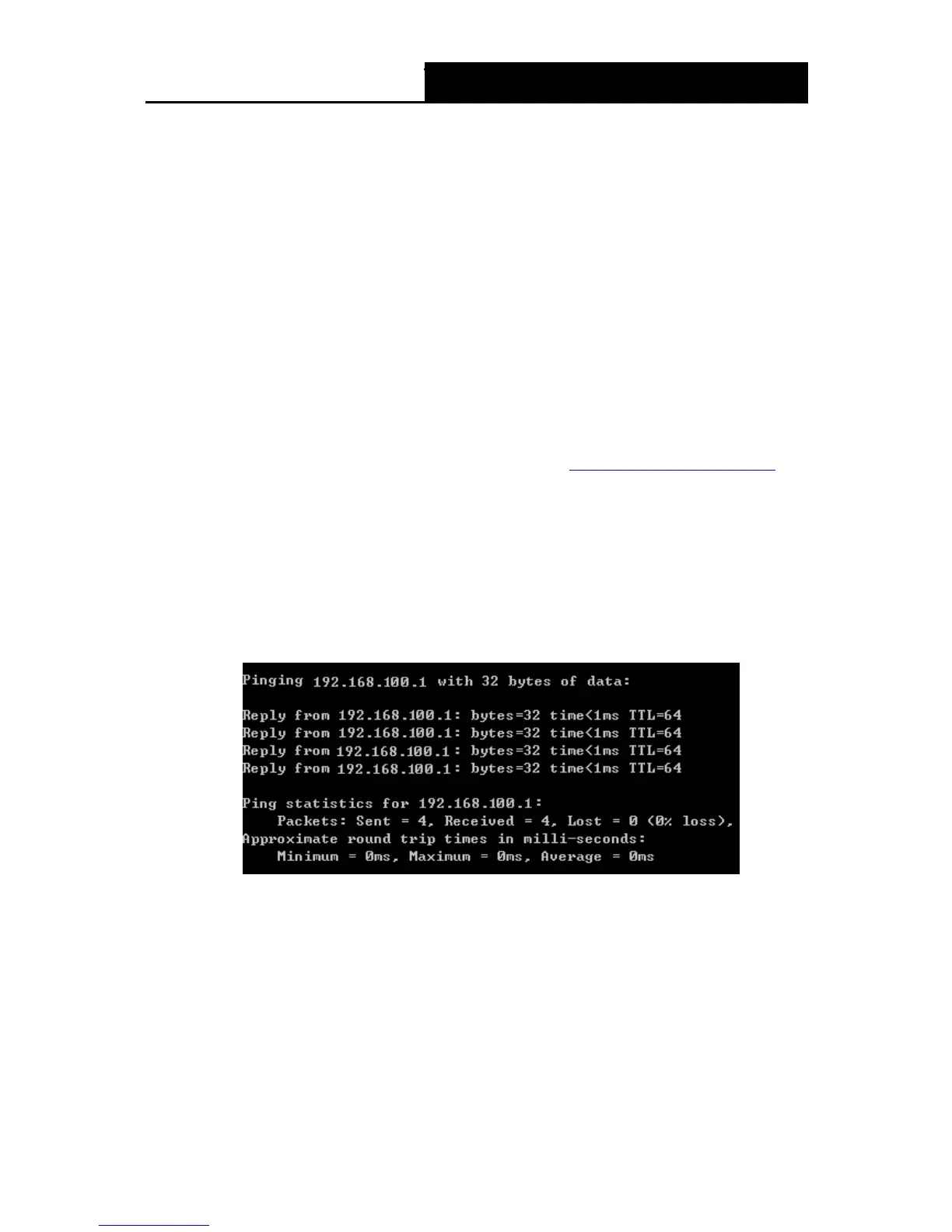 and press Enter. Type ping 192.168.100.1 on the next screen, and then press Enter.