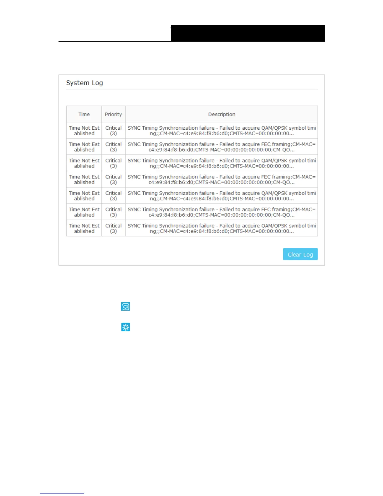 Choose menu Advanced > System Log”, you can view and clear the logs of the modem.
