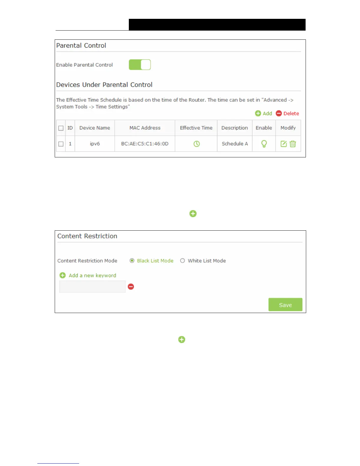 Content Restriction Mode – Select the Black List Mode or White List Mode for this